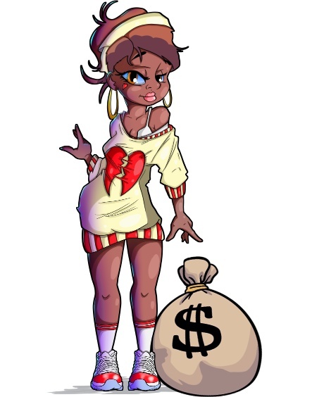 Ta koszulka przedstawia przerysowaną, karykaturalną postać młodej kobiety, która symbolizuje konsumpcjonizm i materialistyczne podejście do życia.
