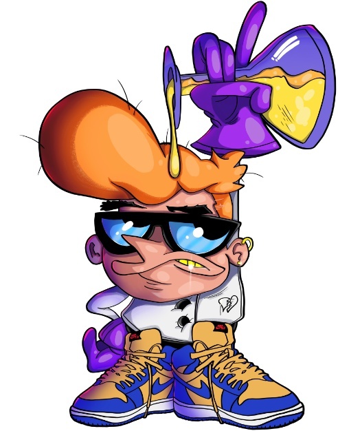 - Motyw: Dexter, główny bohater kreskówki "Laboratorium Dextera"